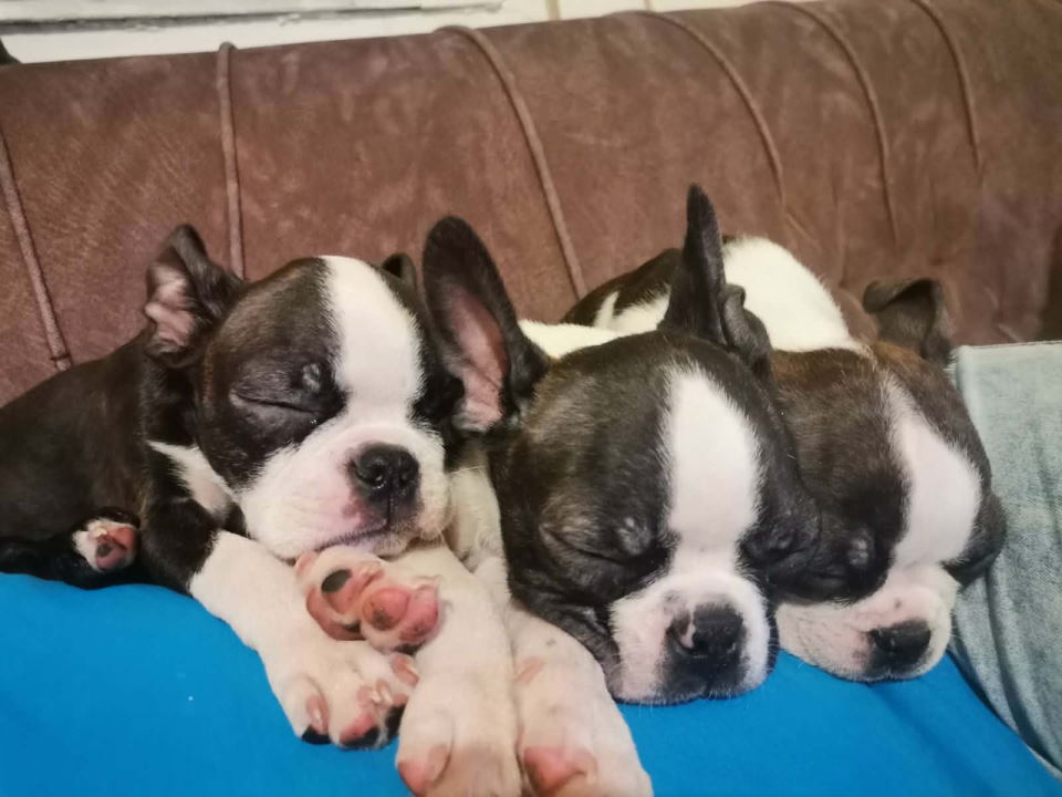 Boston terijer dve devojčice I tri dečaka, traže novi dom, veoma povoljno. Dečaci I devojčice su vakcinisani I revakcinisani. Odrasli su u kućnim uslovima. Mužjaci imaju tri meseca, a ženkice pet. Veoma su veseli I razigrani.