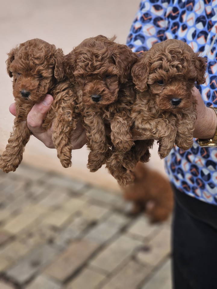 Crvene pudle toy, od oba roditelja u mom vlasnistvu, spremni za preuzimanje. Vakcinisani su i ocisceni od parazita. Odvojeni su od mame, nauceni da jedu granulice. Socijalizovani su, odgajani u kucnim uslovima. Pelenica im nije nepoznanica. Divnog karaktera, verni ljubimci, puni ljubavi i neznosti. Dlaka se ne linja i nemaju neprijatnih mirisa. Savrseni kucni ljubimci i clanovi porodice. Moguca je i dostava uz dogovor a za ostale informacije pozovite