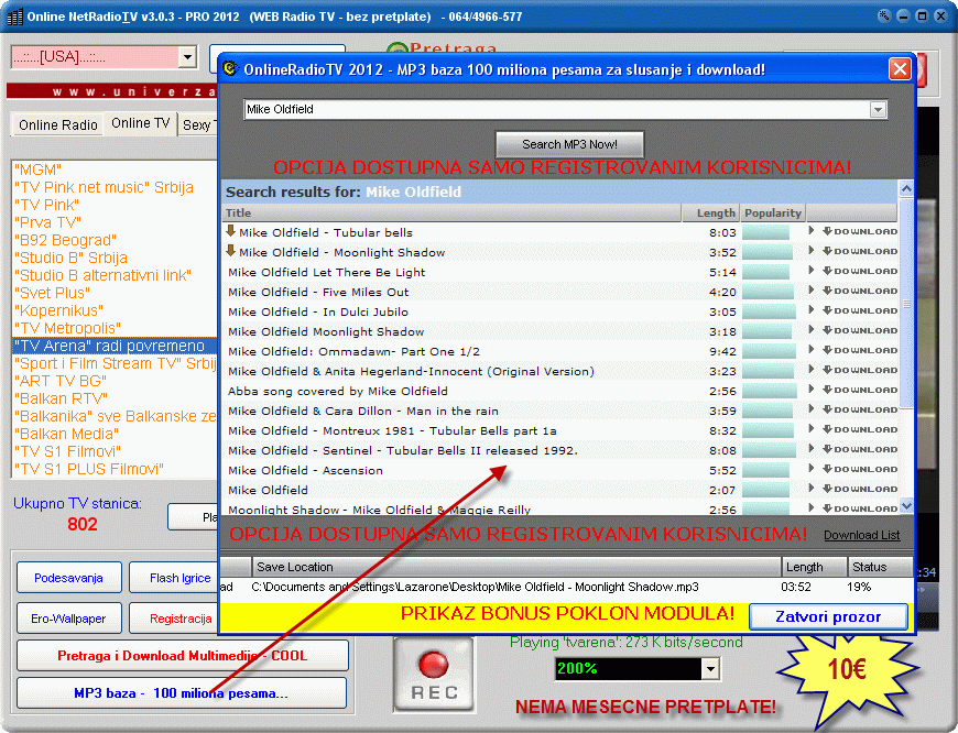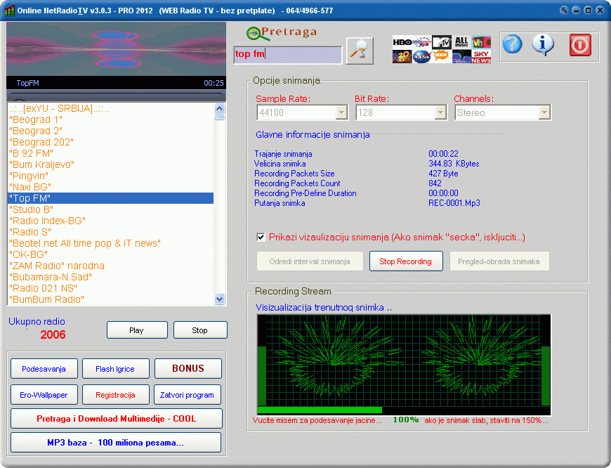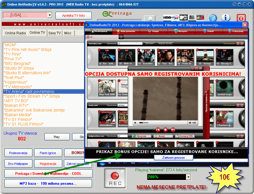 - Interne Radio i Televizija + HD TV bez mesecne ili godisnje pretplate (preko 1000 kanala)