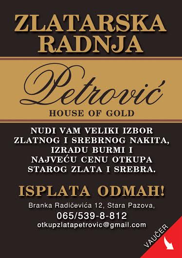 Zlatarska radnja House Of Gold Petrovic vrsi otkup zlata i srebra po najpovoljnijim cenama, takodje nudimo i veliki izbor burmi, zlatnog i srebrnog nakita. |