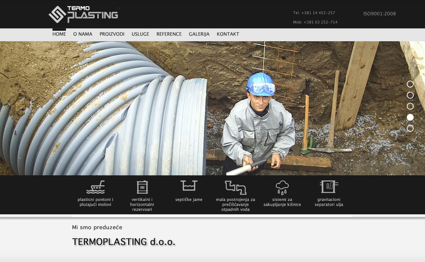 Termoplasting doo proizvodi različite elemente od plastičnih masa velike gustine: polietilena i polipropilena. Neki od naših proizvoda su: rezervoari, septičke jame, pontoni, šahtovi za kanalizaciju itd. |